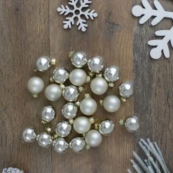 Christmas Central 24ct Shiny And Matte Champagne Gold Glass Ball Christmas Ornaments 1″ (25mm)