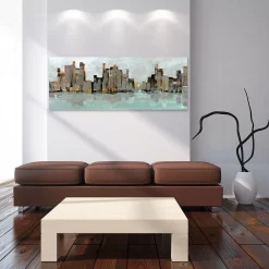 Empire Art Direct Second City Abstract Chicago Skyline Frameless Free Floating Tempered Glass Panel Graphic Wall Art
