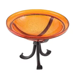 Achla Designs Hand Blown Crackled Glass Garden Birdbath Bowl, 12 Inch, Teal
