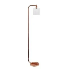 Simple Designs Antique Style Industrial Iron Lantern Floor Lamp With Glass Shade, Rose Gold