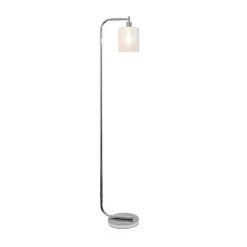 Simple Designs Antique Style Industrial Iron Lantern Floor Lamp With Glass Shade, Chrome
