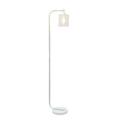 Simple Designs Antique Style Industrial Iron Lantern Floor Lamp With Glass Shade, White