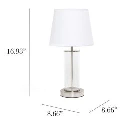 Simple Designs Encased Metal And Clear Glass Table Lamp – Brushed Nickel And White