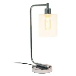 Simple Designs Bronson Antique Style Industrial Iron Lantern Desk Lamp With USB Port And Glass Shade – Chrome