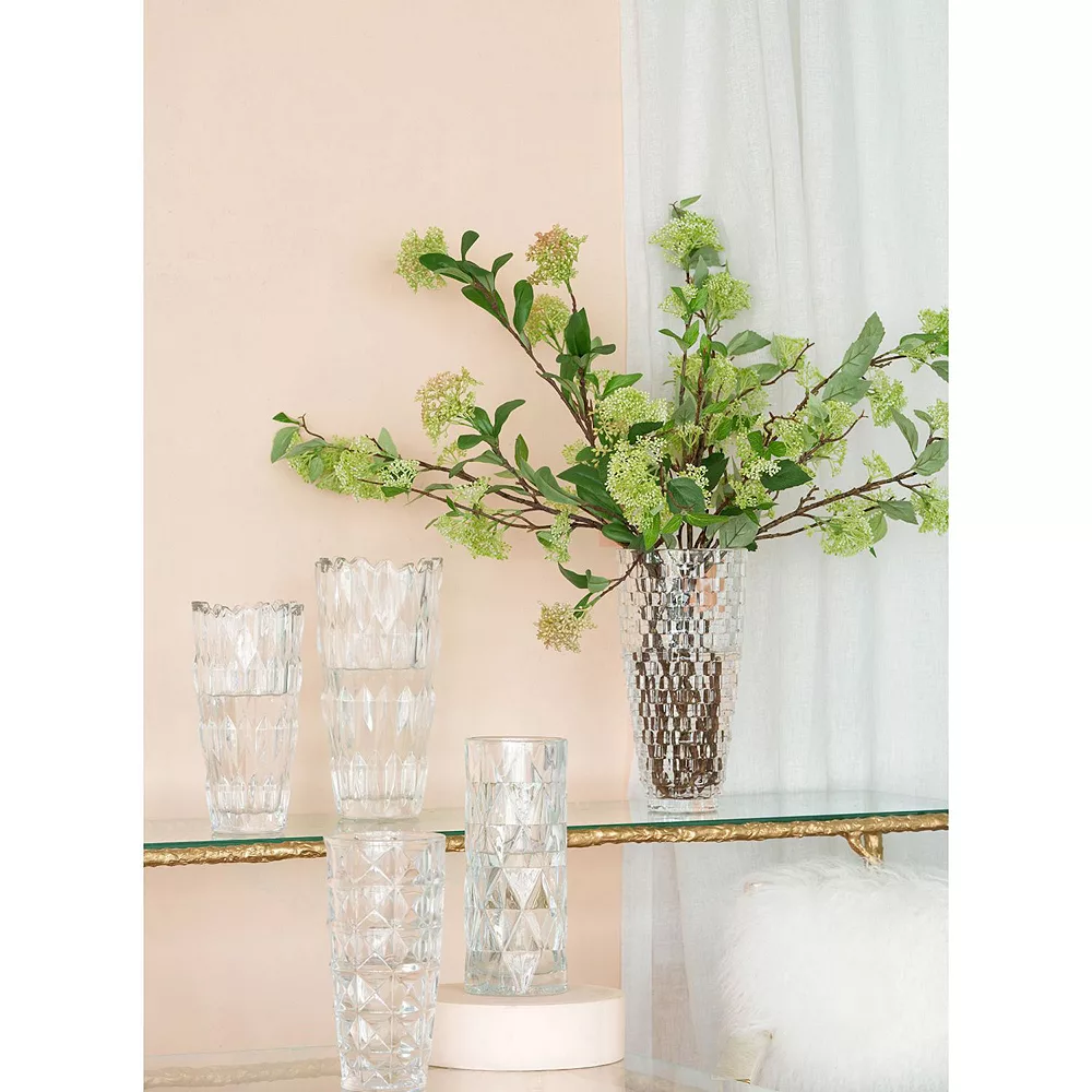 Instantly brighten any space with this tall vase from the Lexi collection! This v-shaped vase lets its contents take center stage! Pairs well with any artificial or real greenery and keep bouquets fresh or take advantage of the transparency to display colorful items. Features: Features clear vintage style glass tall flower vase. Texture surface bounces light throughout the room. Item comes with a traditional v-shaped basin. Recommended for indoor decorative use. Can be used as a tabletop decor. Dimensions: 11.7 high x 5.9 diameter. Material(s): glass