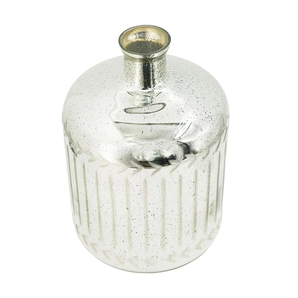Save some space for this antique silver vase! Take a look at this elegant accent piece that you’re craving for inducing an exquisite finish to your indoor. The tables won’t look dull and dry anymore! Product Features: Antiqued silver glass vase. Features a narrow mouth and vertical line design on a round body. Perfect decor for living room dining room or bedroom. Recommended for indoor decorative use only. Made in India. Dimensions: 13.8H x 9.8W x 9.8D. Material(s): glass
