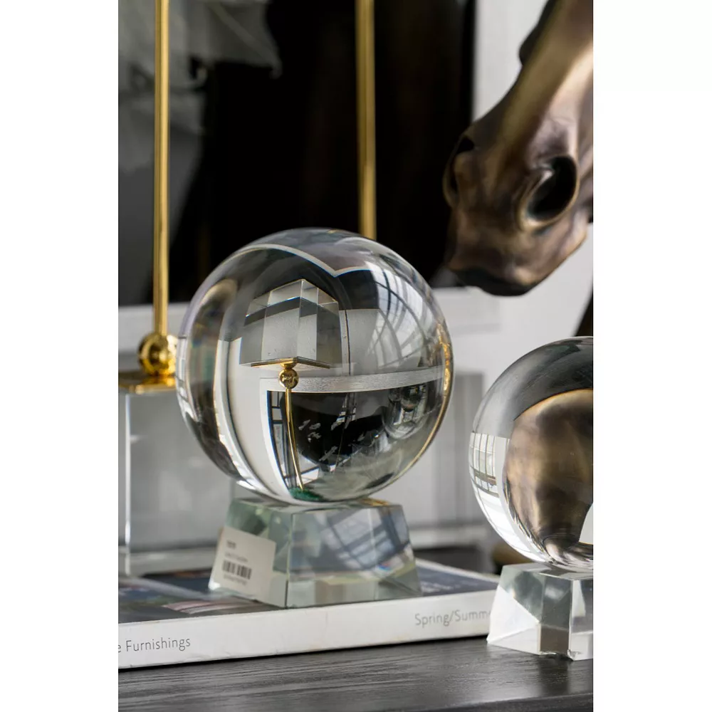 The choice is quite simple if you are looking for a unique decorative item. This sphere coupled with a stand is sure to strike eyes. With a shiny finish the piece can go well with your decor regardless of style. Enthralling isn’t it?. Features. Features a glossy finish with a contemporary touch. Includes a transparent glass base. Perfect for a table or mantle piece. Recommended for indoor use. Dimensions: 6 high x 4.7 diameter. Materials: glass