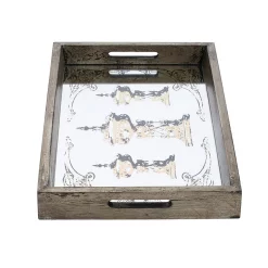 This Greta Rectangular Glass & Wood 2-Piece Tray Set will add a vintage charm to your home decor.