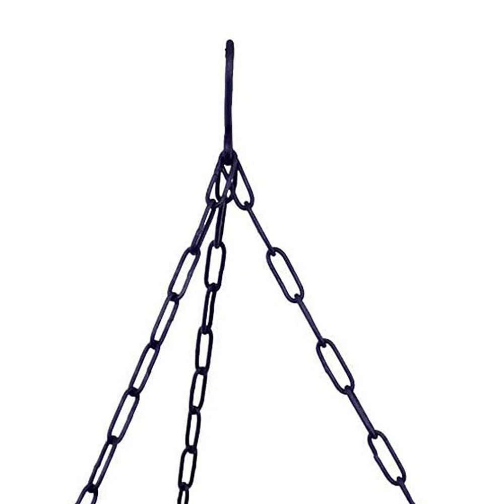 - Simple wrought iron hanging ring has 3 chains connected by a top hanging hook with a rail mount bracket; Easy to assemble