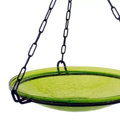 - The Crackle Glass Hanging Birdbath is a beautiful way to provide water in your backyard habitat year-round