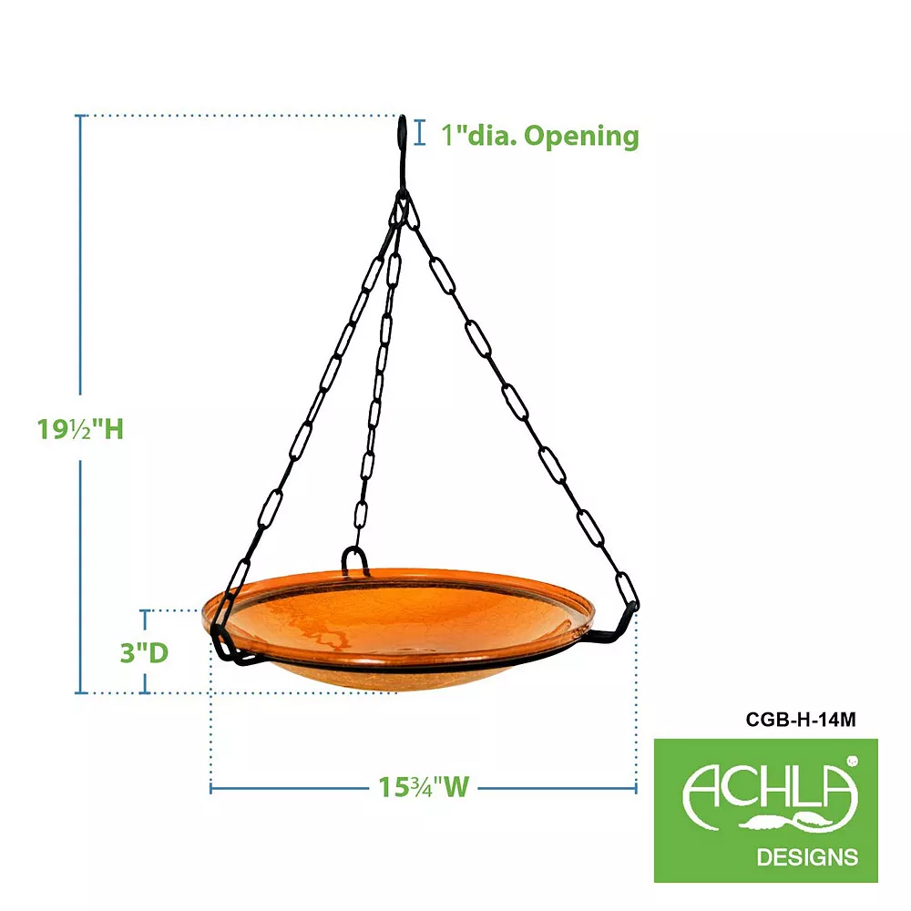 Birds will enjoy a safe place to cool off and drink some water, and gardeners will love having this beautiful piece to accent the plantings. Elevate the look and feel of your outdoor space with the Achla Designs 14 Inch Hand Blown Crackle Glass Hanging Birdbath.