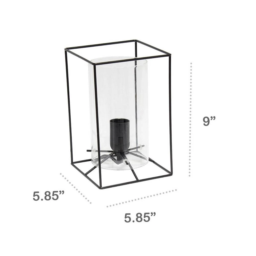 - Cylindrical clear glass shade. Rectangular black metal frame. Style: Contemporary. Finish/Color: Black/Clear. Primary Material: Metal.