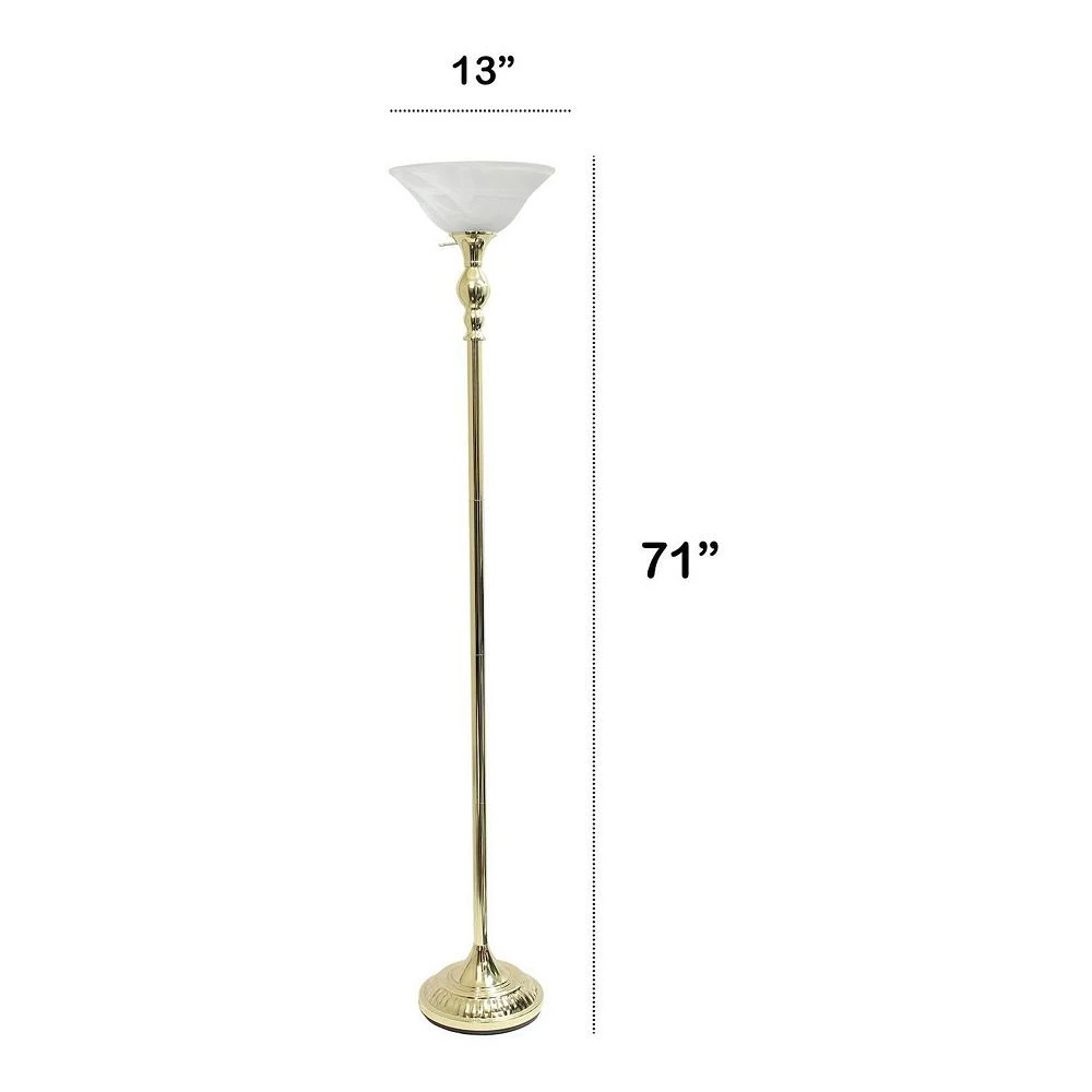 Light up your space with this simple but timeless torchiere floor lamp. It features a marbleized glass shade on a stunning metal base for a clean, sophisticated look. Perfect for your bedroom, office, foyer or living room.