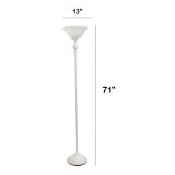 - Style: Traditional. Finish/Color: White/White Shade. Primary Material: Metal. 80% Iron, 15% Glass, 5% Others. Base Type: E26 Medium Base. Base Dimensions: base diameter: 11.5″ Height 66.5″. Height from Base to Shade: 67. Bulb Included: No