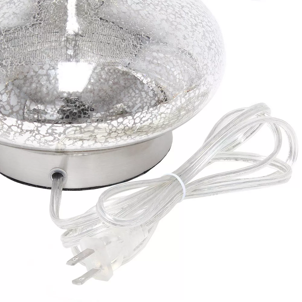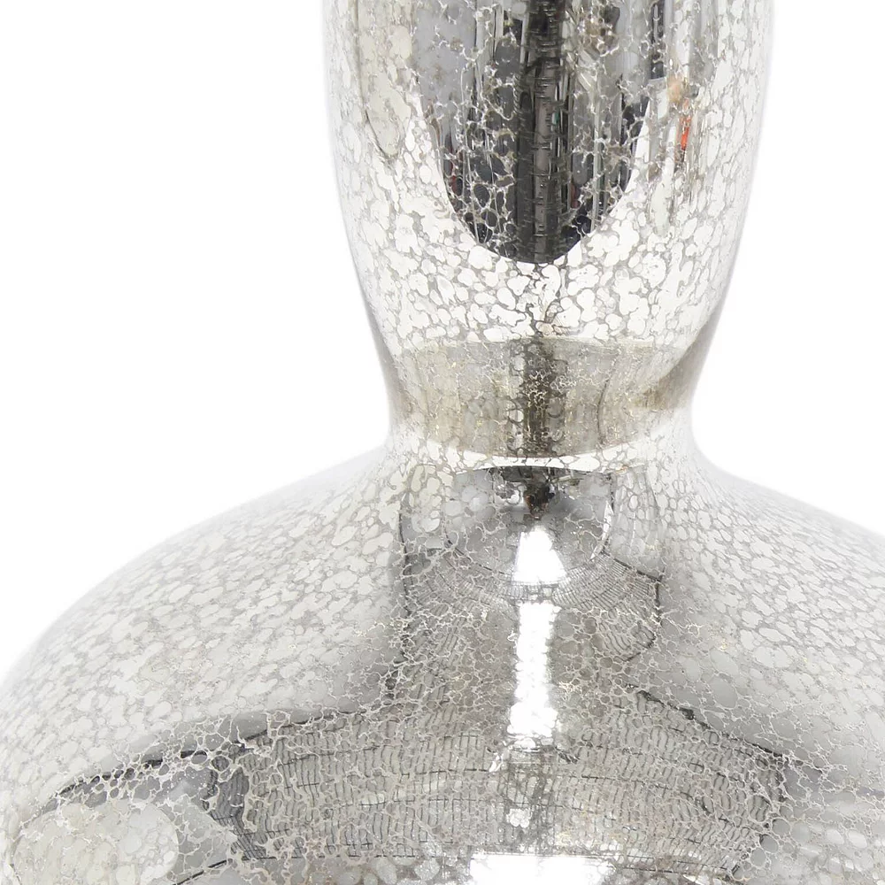 - Fabric white shade. The base is made of mercury glass. Style: Contemporary. Finish/Color: Mercury. Primary Material: Glass.