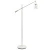- Fabric white shade. The base is made of teal glass. Style: Contemporary. Finish/Color: Teal. Primary Material: Glass. Cord Length: 65.