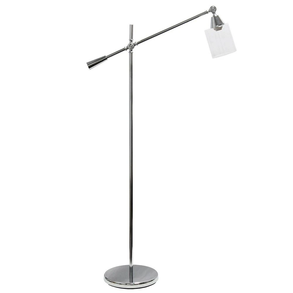 Light up your space in style with this industrial floor lamp. With its’ clean lines, polished chrome finish and clear cylinder glass shade, this lamp will add the perfect sophisticated touch to any room in your home. Easy lever style adjustable arm with hand twist lock to suit your lighting needs. Ideal for your foyer, office, bedroom or living room. HELPFUL TIP: To get the complete vintage look, we recommend using a decorative Edison/Vintage bulb (‘not included). Cylindrical clear glass shade. Polished Chrome finish. 1 x 60W medium type A base bulb (‘not included) required. For full vintage look, Type T45 Edison bulb is recommended 5 foot clear cord. Sophisticated industrial