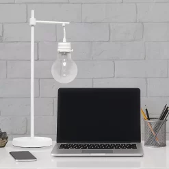 With its’ White matte finish and simple lines, this table lamp adds a touch of sophistication to any room in your home. It features a clear glass globe shade and a convenient on/off switch on the cord making it easy to turn on and off. The clean industrial look brings modern charm to your living room, bedroom, office or foyer. Clear globe glass shade. White matte finish. 1 x 25W type B candelabra base bulb (‘not included) required 5 foot White cord. Sophisticated industrial
