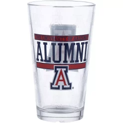 Represent your alma mater with pride as you sip from this Arizona Wildcats Repeat Alumni pint glass. Its printed decal graphics feature the Arizona Wildcats logo on one side and an alumnus design on the other. There is also an etched team pattern all over that will emphasize your unwavering support.