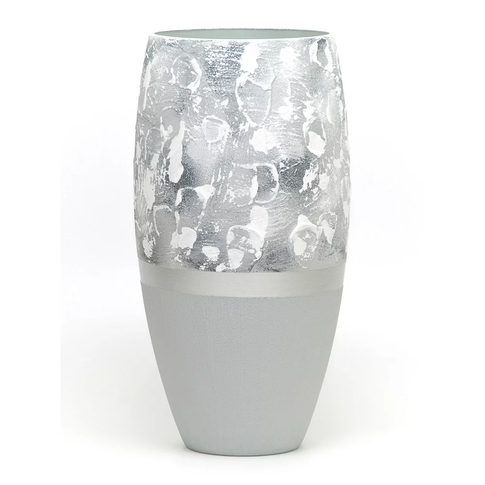 You will fall in love with the elegance of this beautiful glass vase. It has a three-layered design that is excellently hand-painted in several shades of gray. This barrel vase will take the focus of your decor to your table and mantlepiece. Add in some beautiful flowers to complete the striking effect. Product Features: Gray and white barrel vase. Brushstrokes design. Hand painted with high quality materials. Recommended for indoor use only. Made in Belarus. Care instructions: wipe clean with a dry or damp sponge; do not use detergents or abrasive products. Dimensions: 11.75 high x 6.25 diameter. Material(s): glass