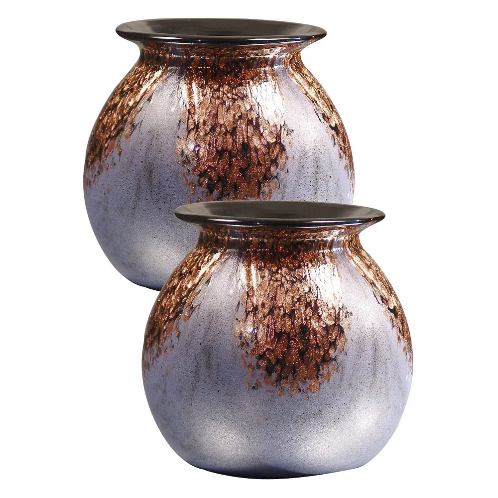 From the Springdale Collection. Beauty meets quality in these meticulously crafted glass vases. Unique design and structure along with excellent craftsmanship make it the worthiest and incomparable addition. These elegant additions are apt for the study room living room office etc. Product Features: 2-piece pot shaped art glass vase set. Each vase is hand blown using favrile art glass. Recommended for indoor use only. Dimensions: 6.25 high x 6.5 diameter. Material(s): hand blown art glass. Set includes 2 of the items pictured