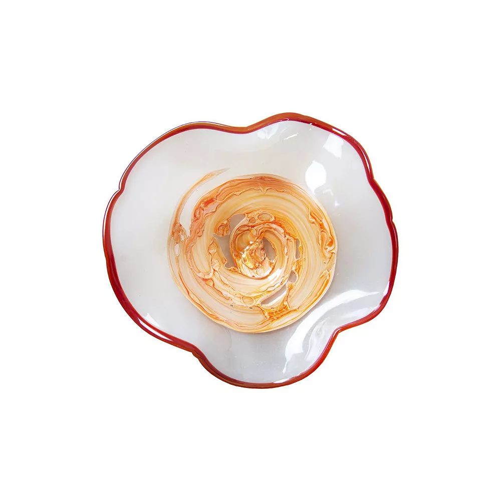 Lend a tranquil feel to your home or office using this cavalier wall decor. These plates are made of a special kind of art glass that offers utmost perfection and grace. This one kind of art has a ruffled edge delivering the spirit of a delicate bloom. Product Features: Plate is made of favrile art glass. Hand blown in concentric waves of orange in the middle on a white background edged with orange. Hang it on the wall with hardware provided or simply display on any flat surface. Plates features a gently ruffled edge. Recommended for indoor use only. Care instructions: spot clean only. Dimensions: 3 high x 9 diameter. Material(s): hand blown art glass