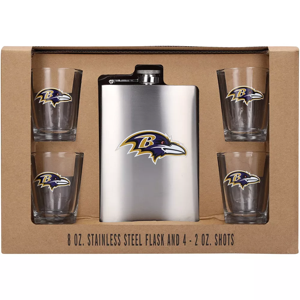 Treat yourself or the biggest Baltimore Ravens fan you know to this drinkware set. It includes a stainless steel flask and four-pack of shot glasses, all featuring crisp team graphics. They’re sure to make Baltimore Ravens game days unforgettable.