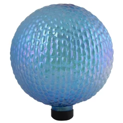 Thought to attract fairies and magical beings gazing balls have been making gardens beautiful since the 13th century. Designed with a stemmed bottom with a rubber cap making it easier to place into a stand (please note this gazing globe does not include a stand; the stand must be purchased separately). This versatile piece is the perfect way to add style and charm to your garden. Product Features: Blue and purple gazing ball. Designed with a textured pattern. Iridescent shiny finish. Stand not included. Recommended for indoor and outdoor use. Dimensions: 10 diameter. Material(s): glass