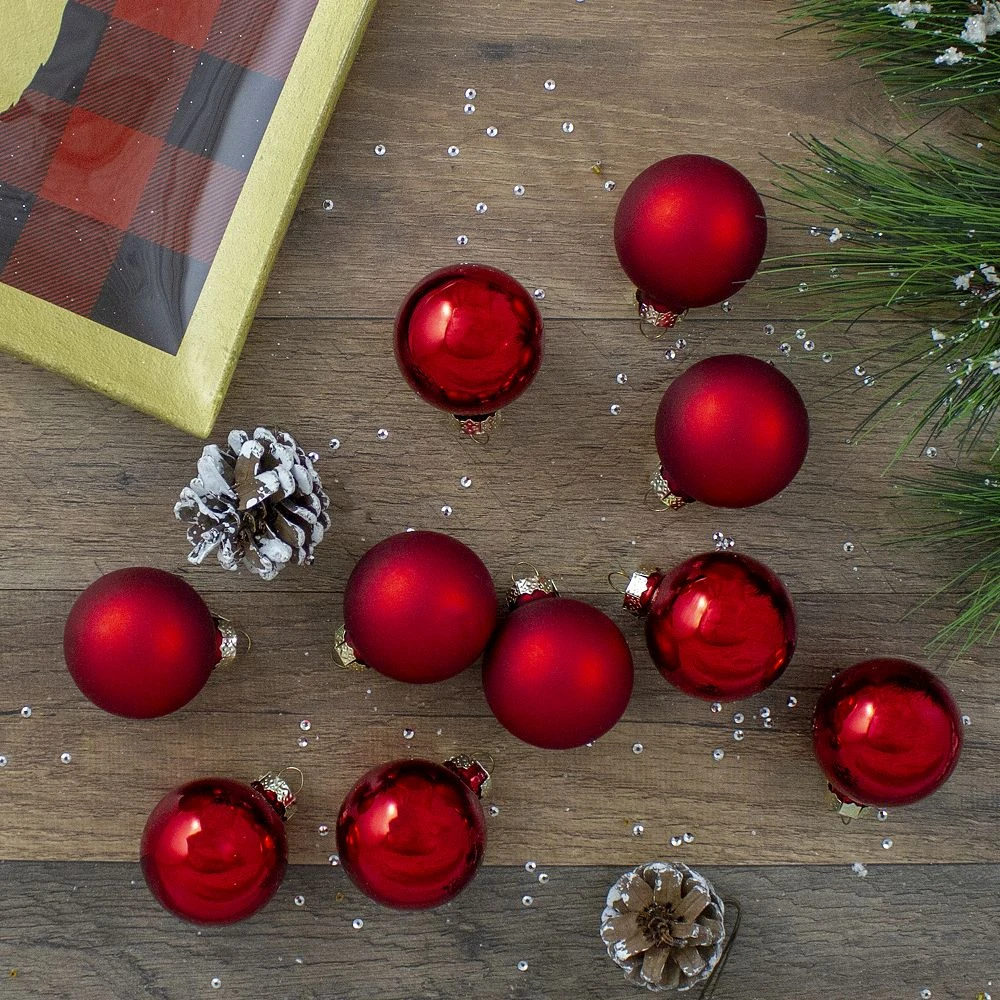 Deck your halls with bells of jolly this Christmas and sing your blues away! An exclusive club pack these glass ball ornaments will allow you to accessorize with a whole new realm of possibility. Offering you a world of creative decor possibilities they come ready to compliment your home and Christmas decor with ease! Product Features: 10-piece set. Color: shiny and matte red. Comes in 2 finishes: shiny (5pcs) and matte (5pcs). Balls are equipped with gold ornament caps (ornament hooks are not included). Dimensions: 1.75 (45mm) diameter. Material(s): glass/metal