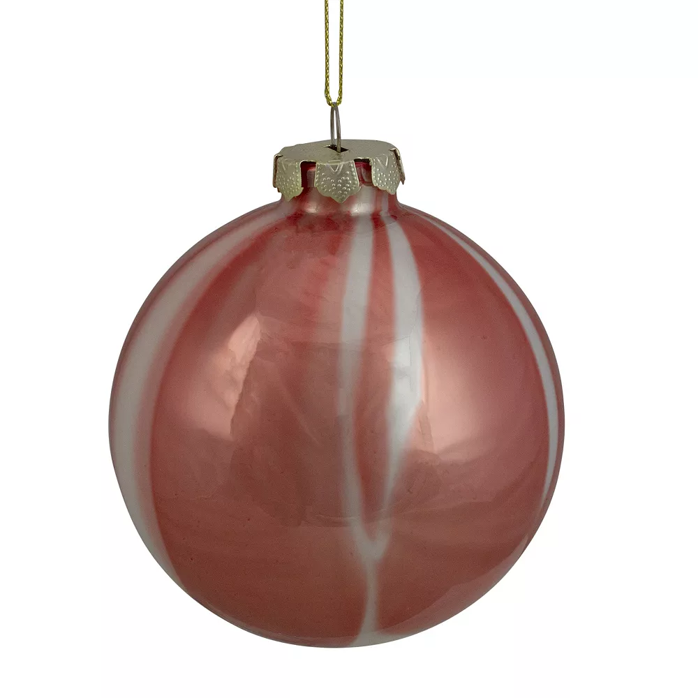 Trimming the tree is a timeless tradition celebrated by many. This beautiful glass ornament is the perfect addition to your holiday decor this season. With a golden cord for hanging this adornment is excellent for decorating trees garland and wreaths. Product Features: Color: mahogany red. Golden embossed cap with a marbled design. Ready to hang from golden cord. Recommended for indoor decorative use only. Dimensions: 4 (100mm) diameter. Material(s): glass