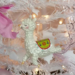 - White and green llama glass Christmas ornament