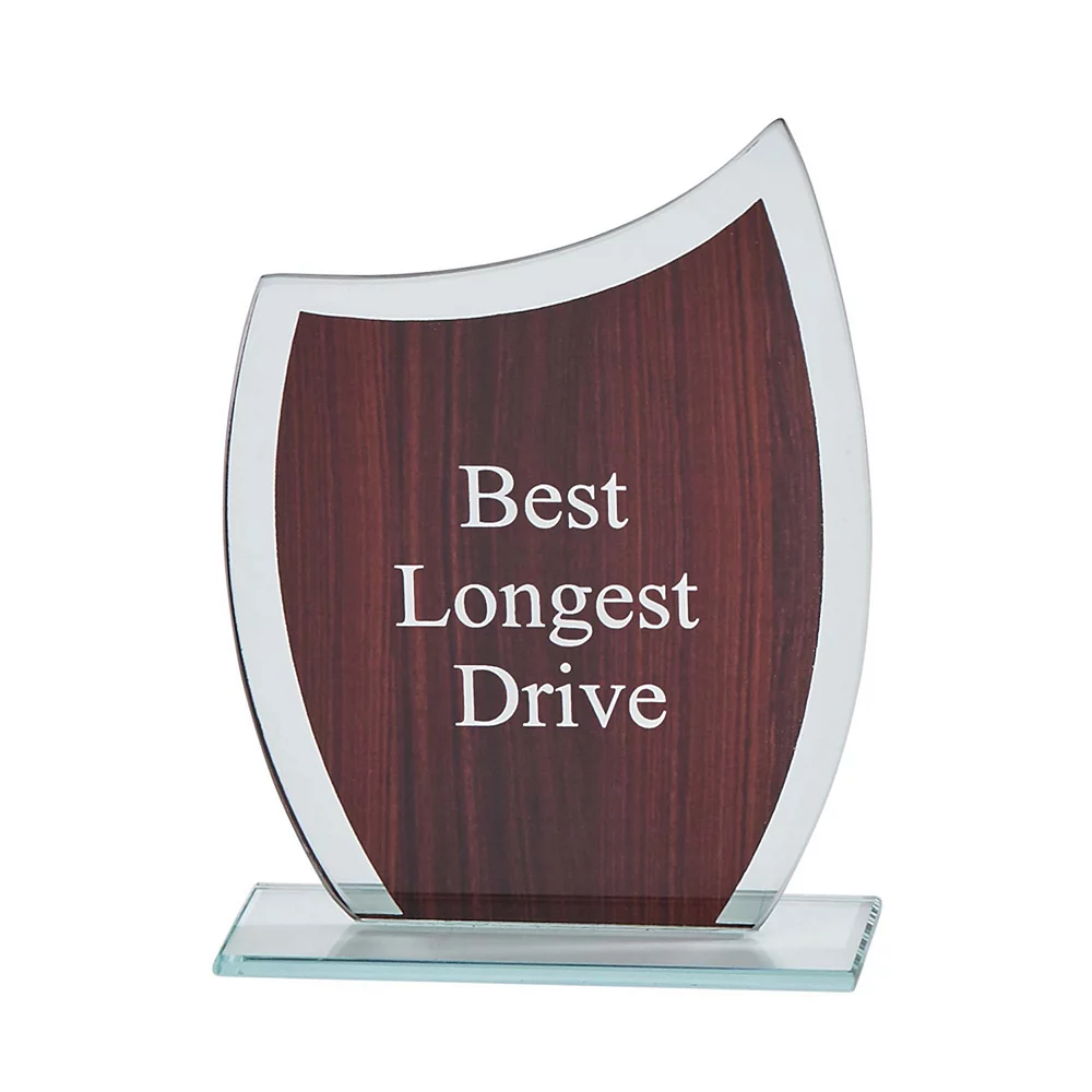 - Glass trophy with wood grain appearance