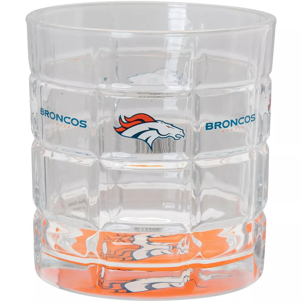 You’ve picked out a nice bottle and gathered your ingredients. Now it’s time to add a dash of team spirit to your next game day drink with this Denver Broncos Bottoms Up rocks glass! Its eye-catching squared debossed design features your favorite squad’s logo in printed detail, letting everyone know you’re the #1 Denver Broncos fan with each sip.