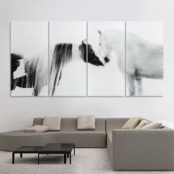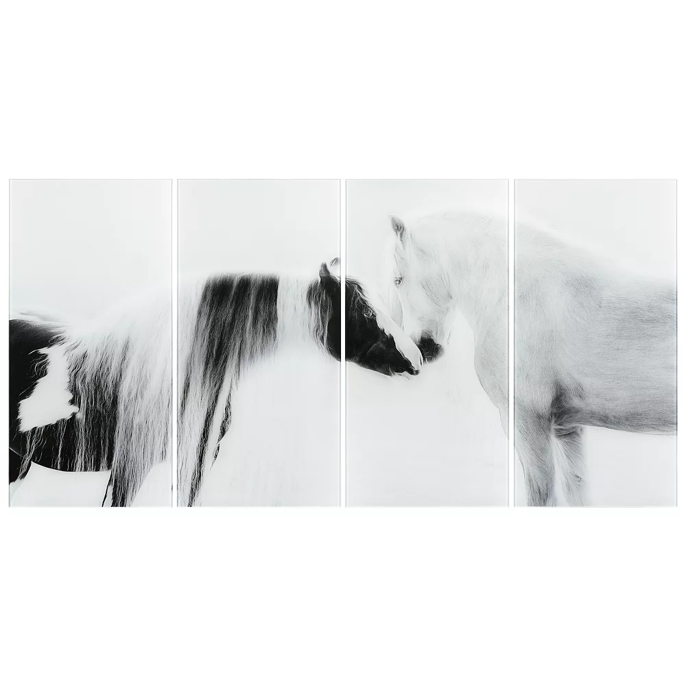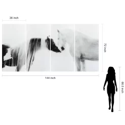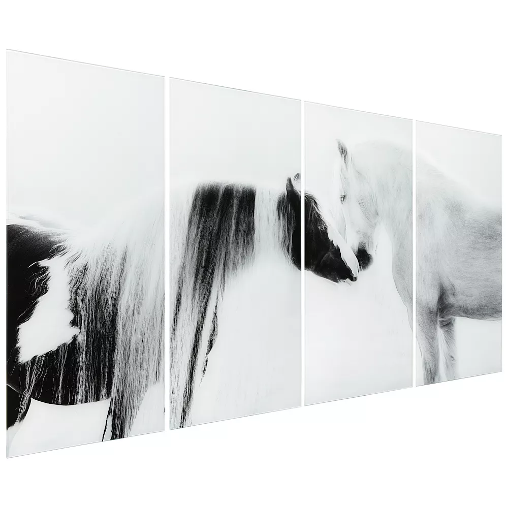 Dress up your walls with this Empire Art Direct “Collection of Horses III ABCD” frameless free-floating tempered glass panel graphic wall art set.