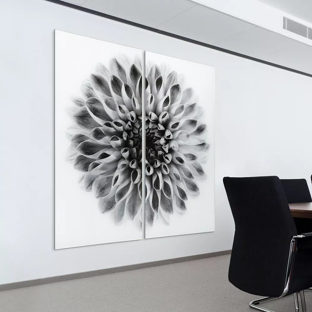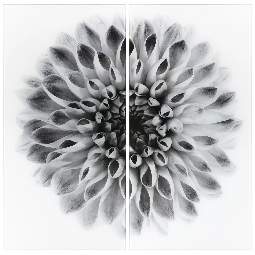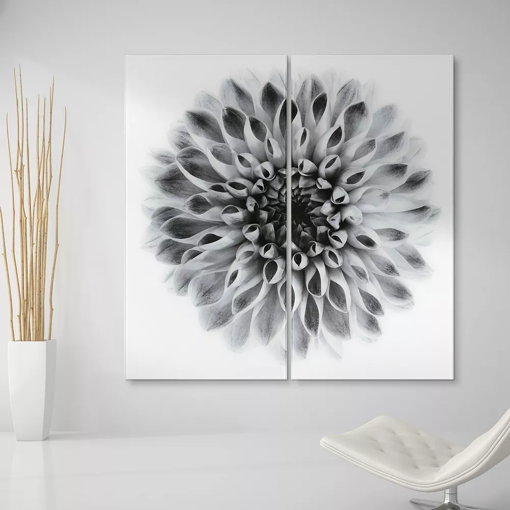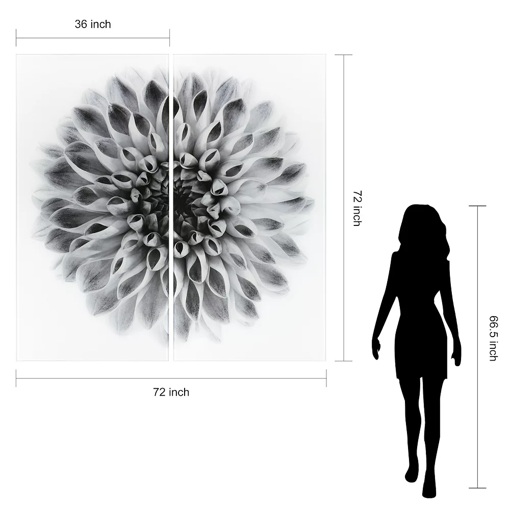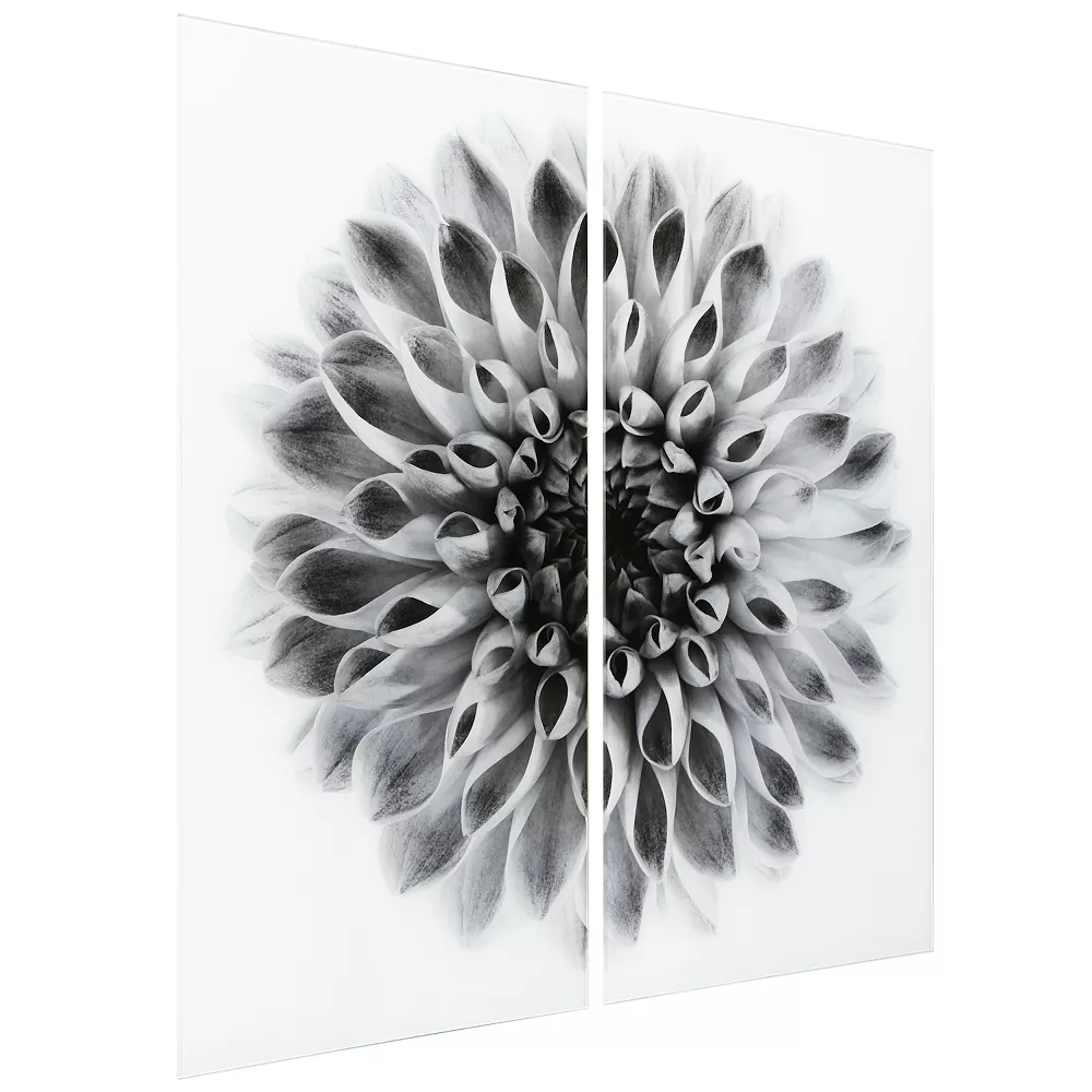 Dress up your walls with this Empire Art Direct “Dahlia AB” frameless free-floating tempered glass panel graphic wall art set.