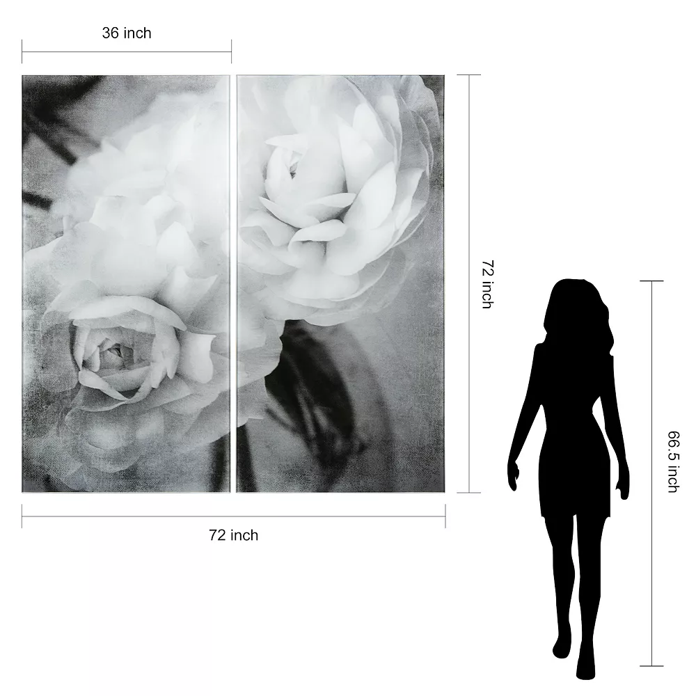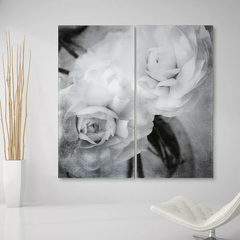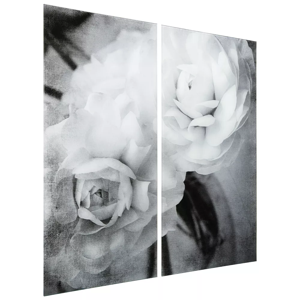 Dress up your walls with this Empire Art Direct “Dark Ranunculus I AB” frameless free-floating tempered glass panel graphic wall art set.