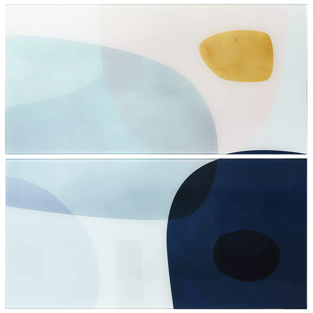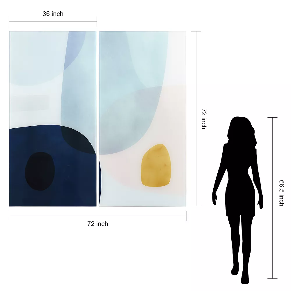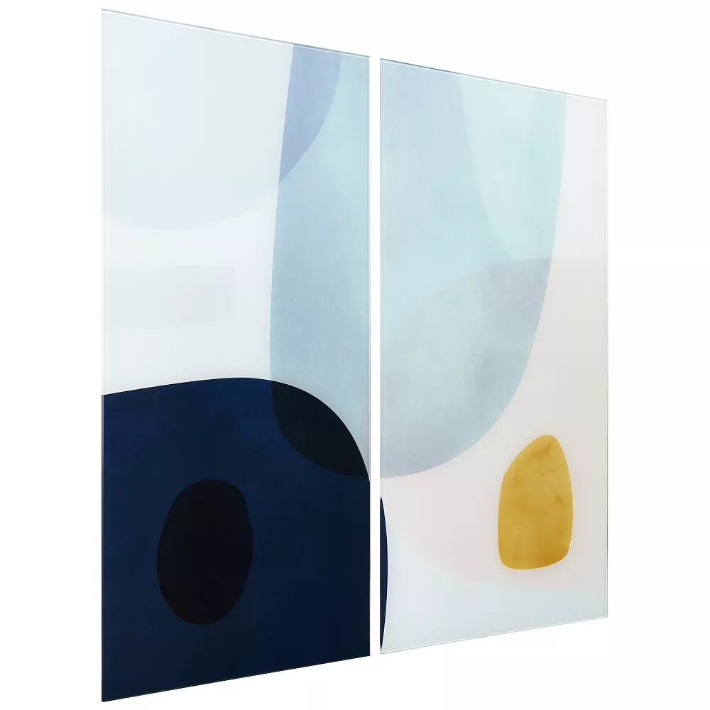 Dress up your walls with this Empire Art Direct “Gold Monde II AB” frameless free-floating tempered glass panel graphic wall art set.