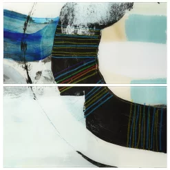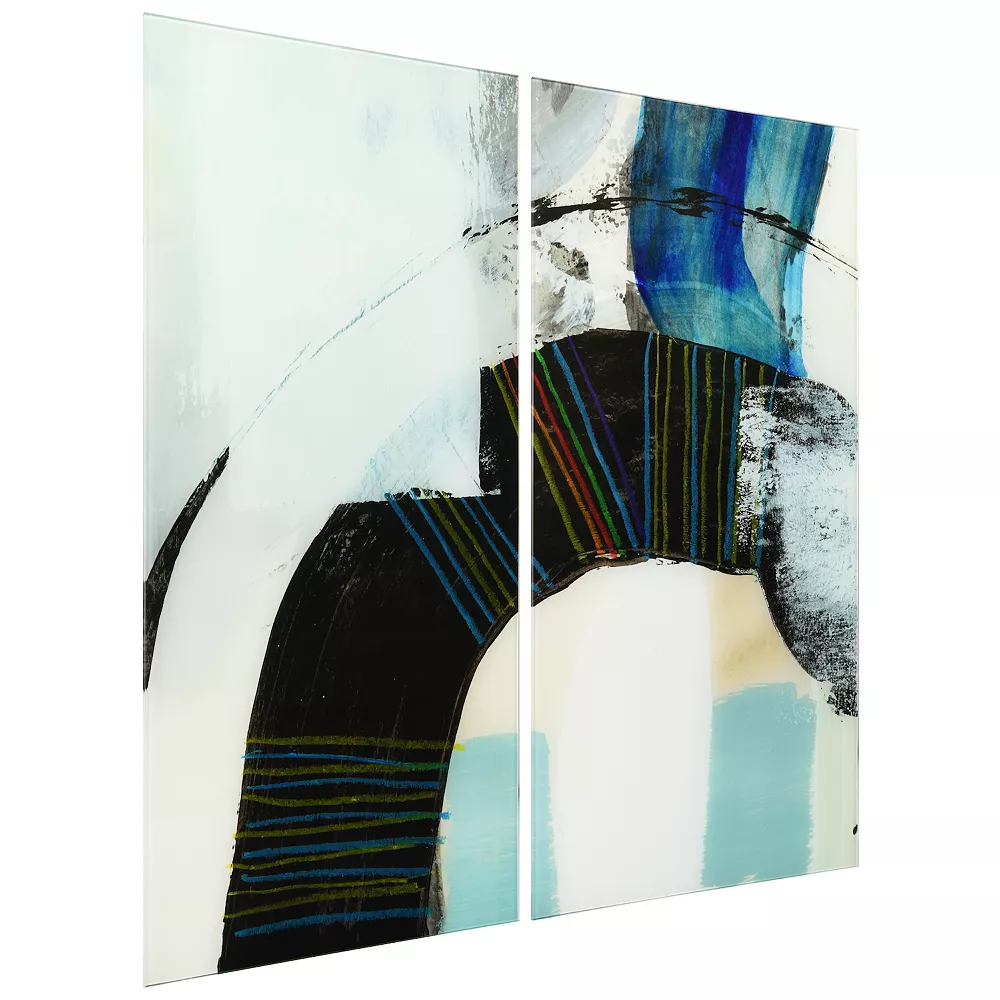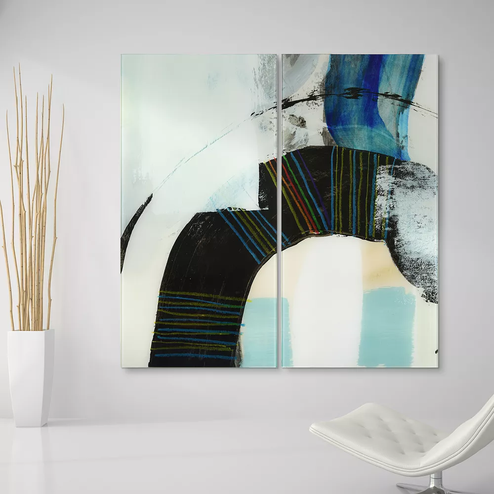 Dress up your walls with this Empire Art Direct “Kabuki I AB” frameless free-floating tempered glass panel graphic wall art set.