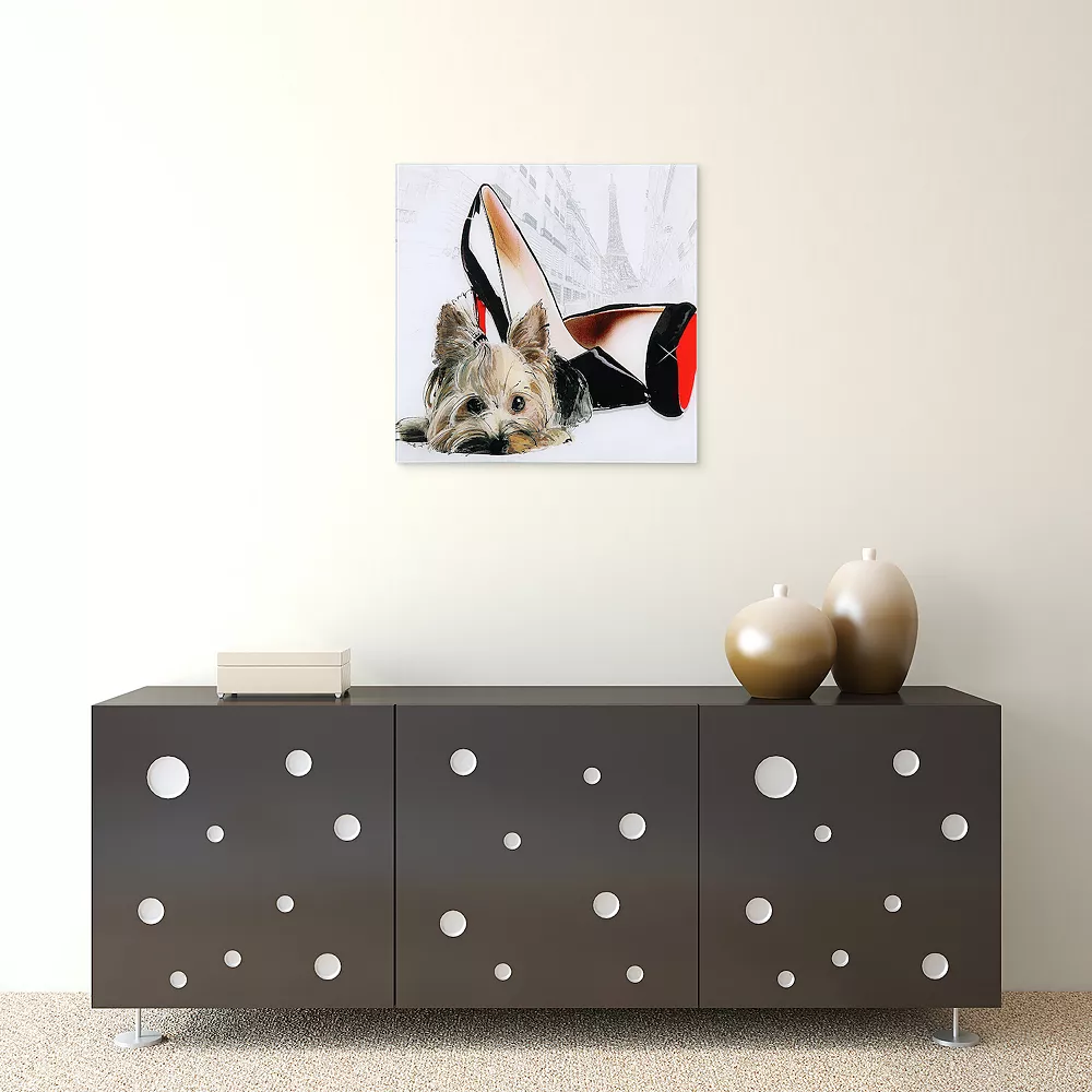 Dress up your walls with this Empire Art Direct “Red Soles” frameless free-floating tempered glass panel graphic wall art.