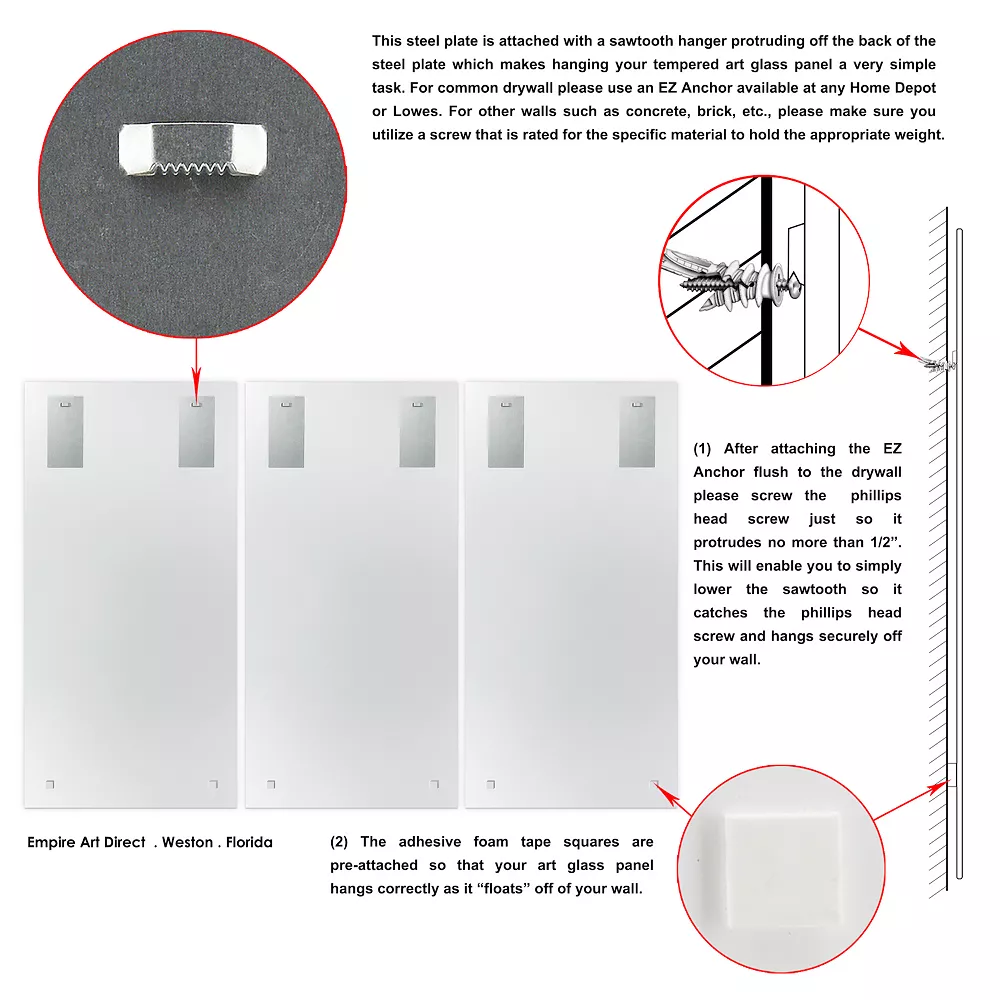 - Three pieces: 72″H x 36″W x 0.2″D (each)
