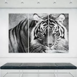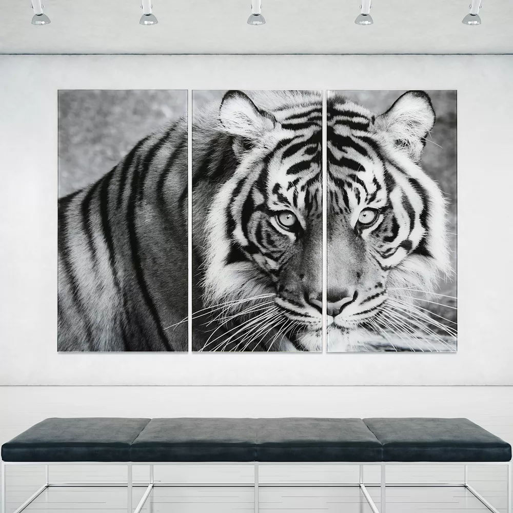 Update your home with the eye-catching design of this Empire Art Direct Tiger ABC glass wall art 3-piece set.