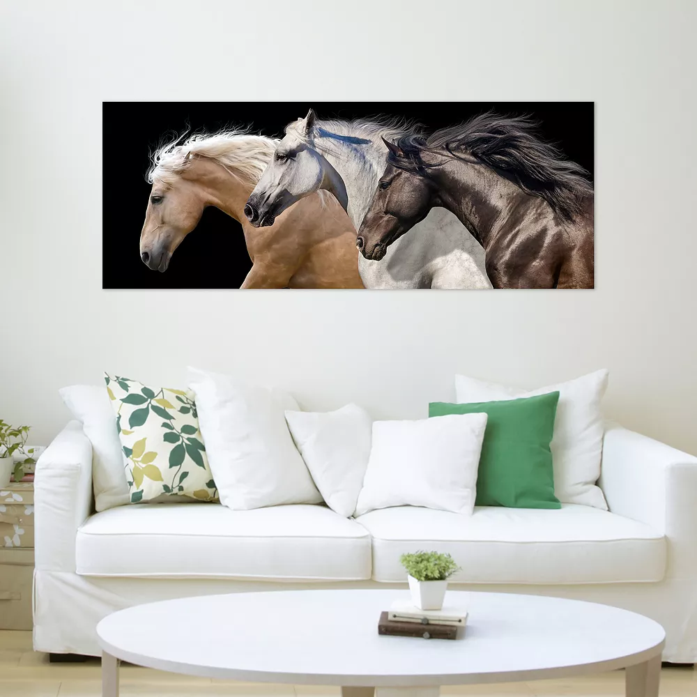 Make your home the place to be with this Empire Art Direct Trilogy 2 Horse Glass Wall Art.