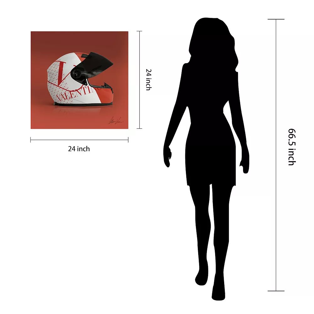 Dress up your walls with this Empire Art Direct “Valentino Speeding Helmet” frameless free-floating tempered glass panel graphic wall art.