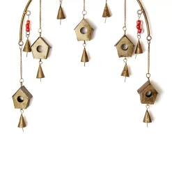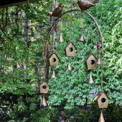 - This large garden chime features two embossed birds perched above five miniature bird houses. The nine bells make sweeet sounds as the bird houses sway.