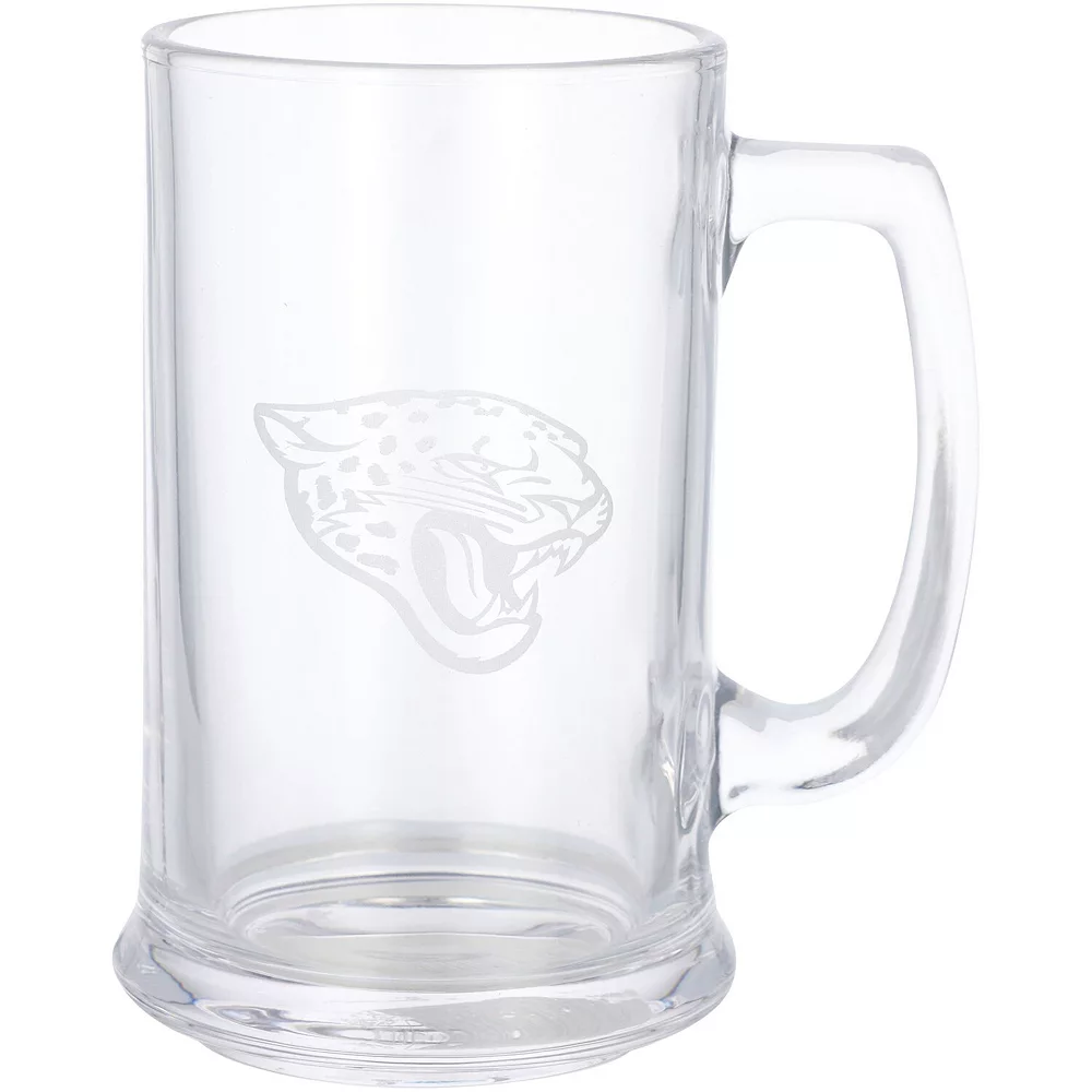 Toast to the Jacksonville Jaguars with this 15oz. Stein glass. It features a laser-etched Jacksonville Jaguars crest that is sure to put an emphasis on your die-hard fandom. The side handle makes raising a glass to your beloved squad easier than ever before.