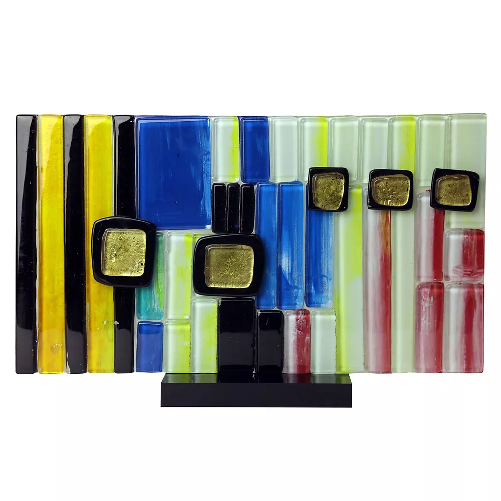 This Jasmine Art Glass Abstract Geometric Sculpture is a perfect focal point for any room in your home.