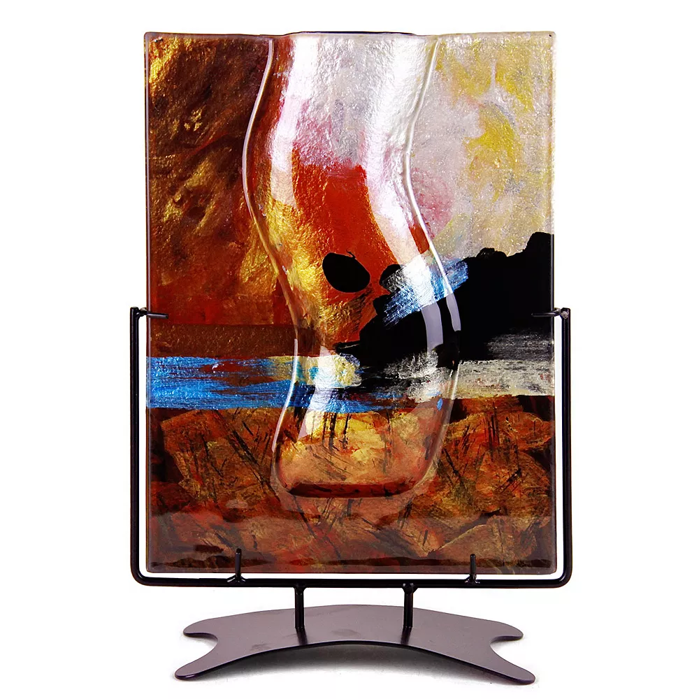 This Jasmine Art Glass Rectangular Vase with Stand will stand out among your home decor.