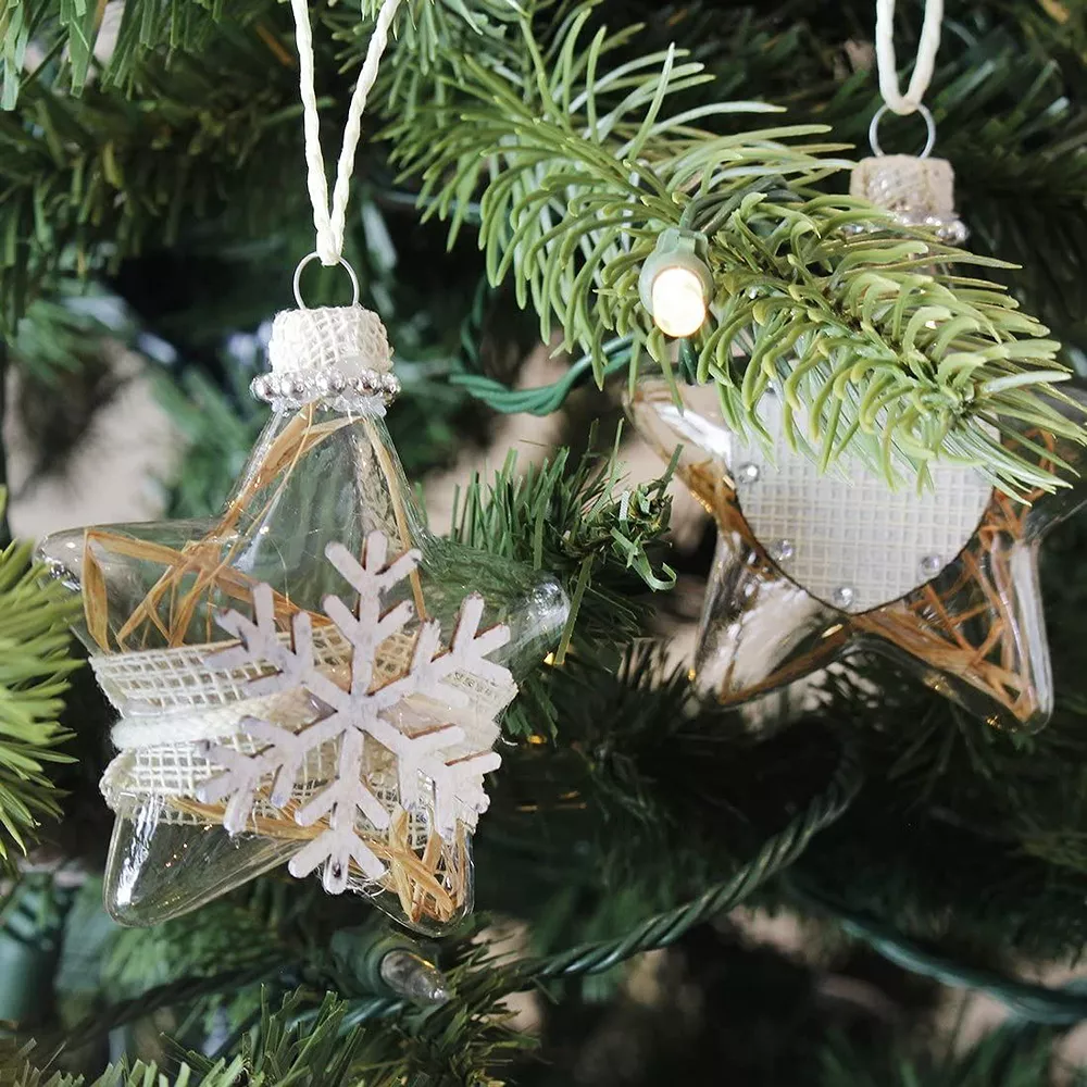 Elevate the holidays with this Christmas ornament set that includes 4-star ornaments. Simply attach a hook onto the top of the Christmas tree ornament and easily hang onto a wreath, garland, or tree to create a warm and festive theme for the holiday season. Adorned with rhinestones and burlap, these small ornaments are sure to add a joyful touch to your home, or office.