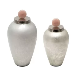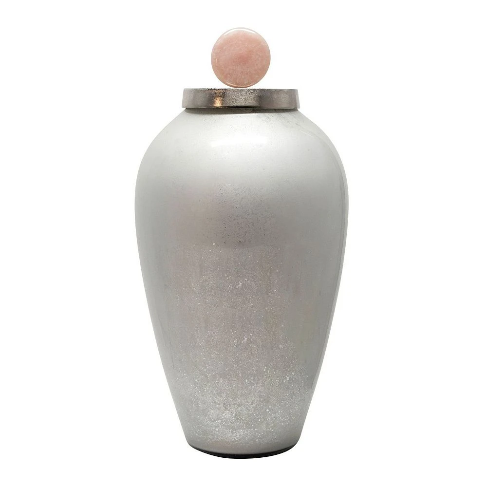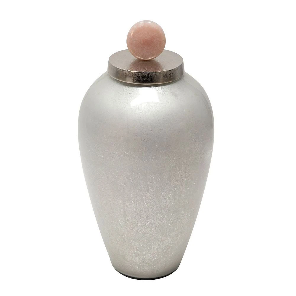 Spice up your home interiors and instill a bit of elegance and richness with this sophisticated glass vase. Crafted with glass and a silver finish it also includes a mesmerizing knob on top making it a unique display piece in your living space. There is no better place to exhibit your DIY flower bouquets. Product Features: Glass vase with knob on top. Silver finished vase adds elegance to home interior. Recommended for indoor use only. Dimensions: 20.5H x 10W x 10D. Material(s): glass/aluminum/stone