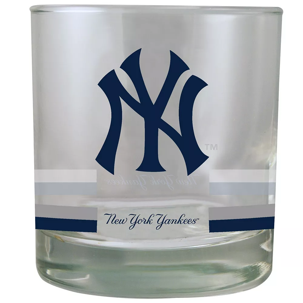 Add some New York Yankees spirit to your selection of drinkware with this Banded Rocks glass. With a bold New York Yankees logo and team-color stripes, this glass is sure to make your fandom impossible to miss.